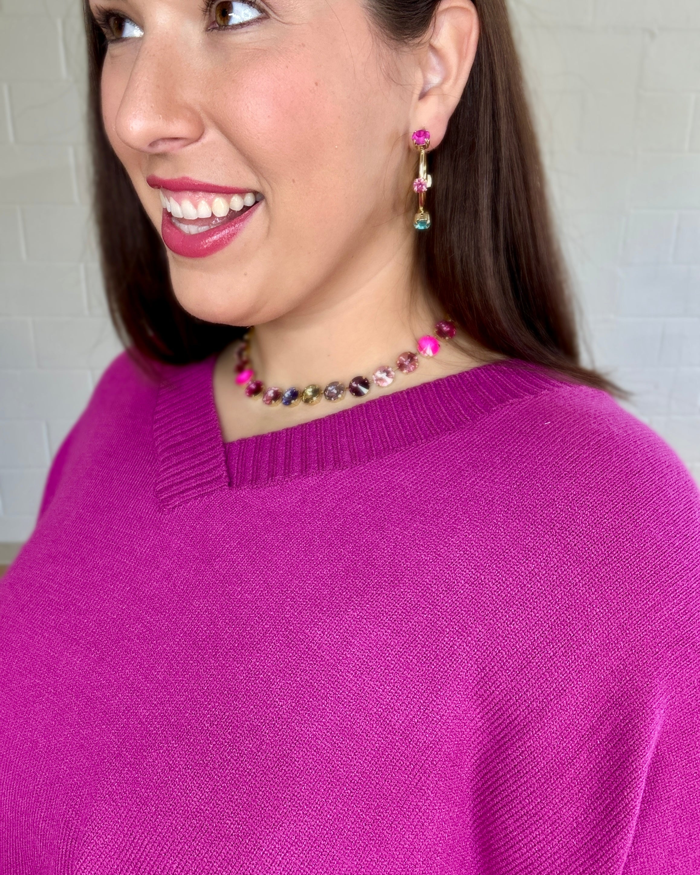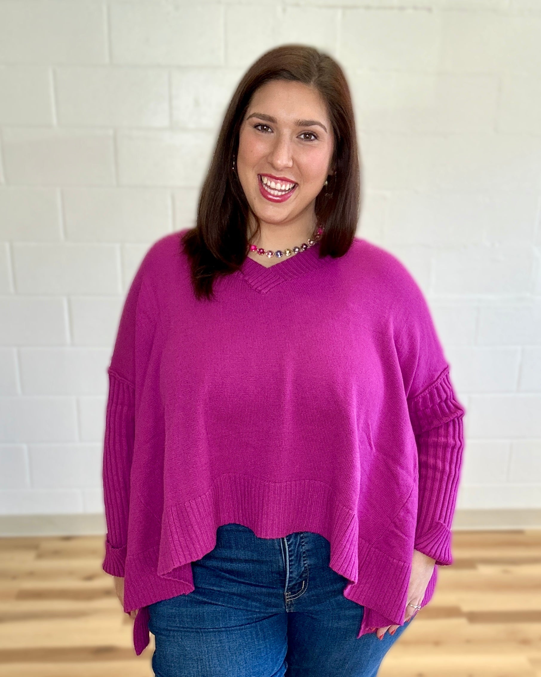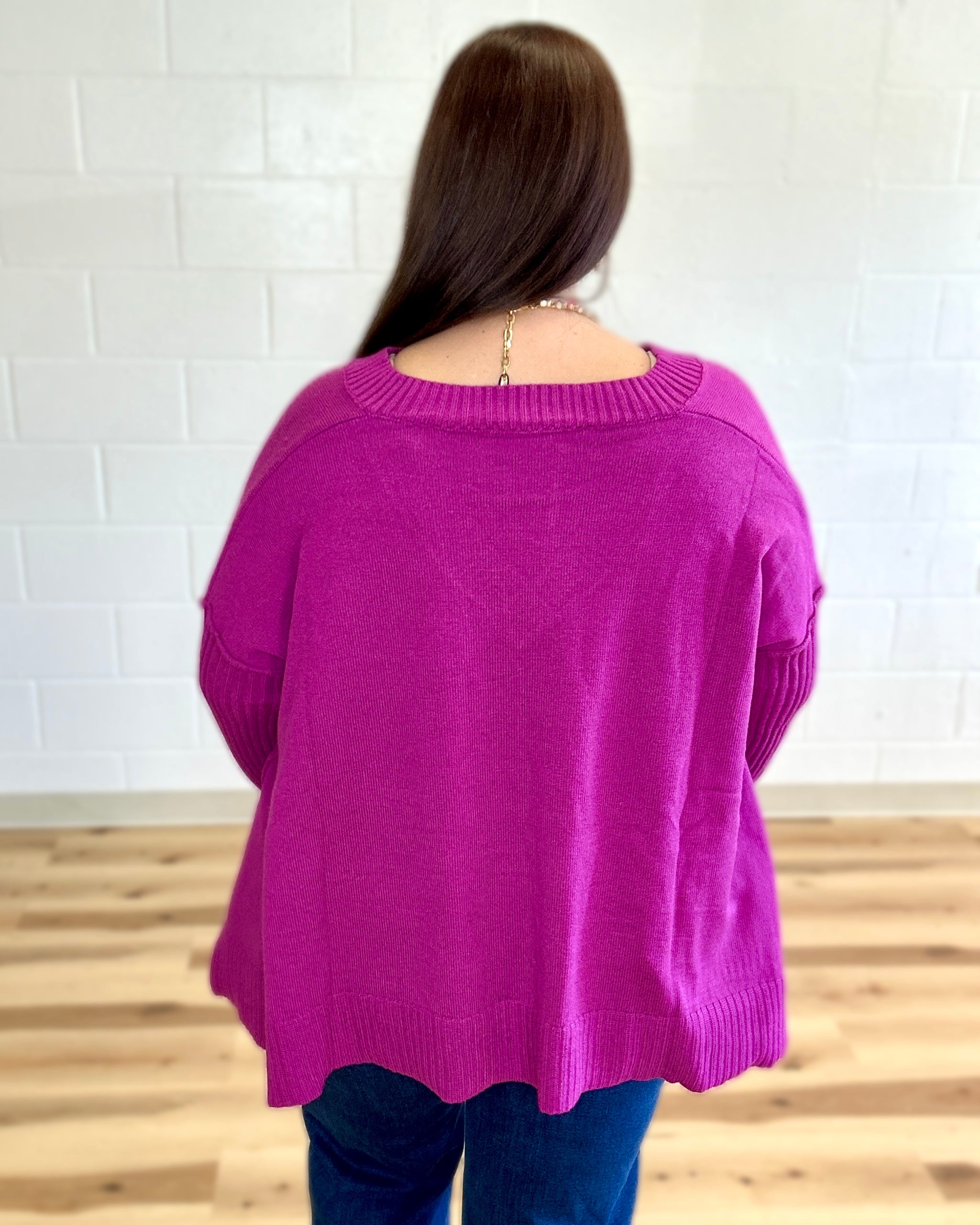 Elevate your everyday wardrobe with this oversized pullover knit sweater from Davi&Dani. Crafted with a flattering v-neckline and ribbed sleeves, this piece delivers sophisticated comfort with modern edge. The strategic side slits add movement and visual interest while maintaining the relaxed, contemporary silhouette. Perfect for layering or wearing solo, this versatile top transitions seamlessly from casual to polished occasions. An investment piece that combines quality construction with timeless design.