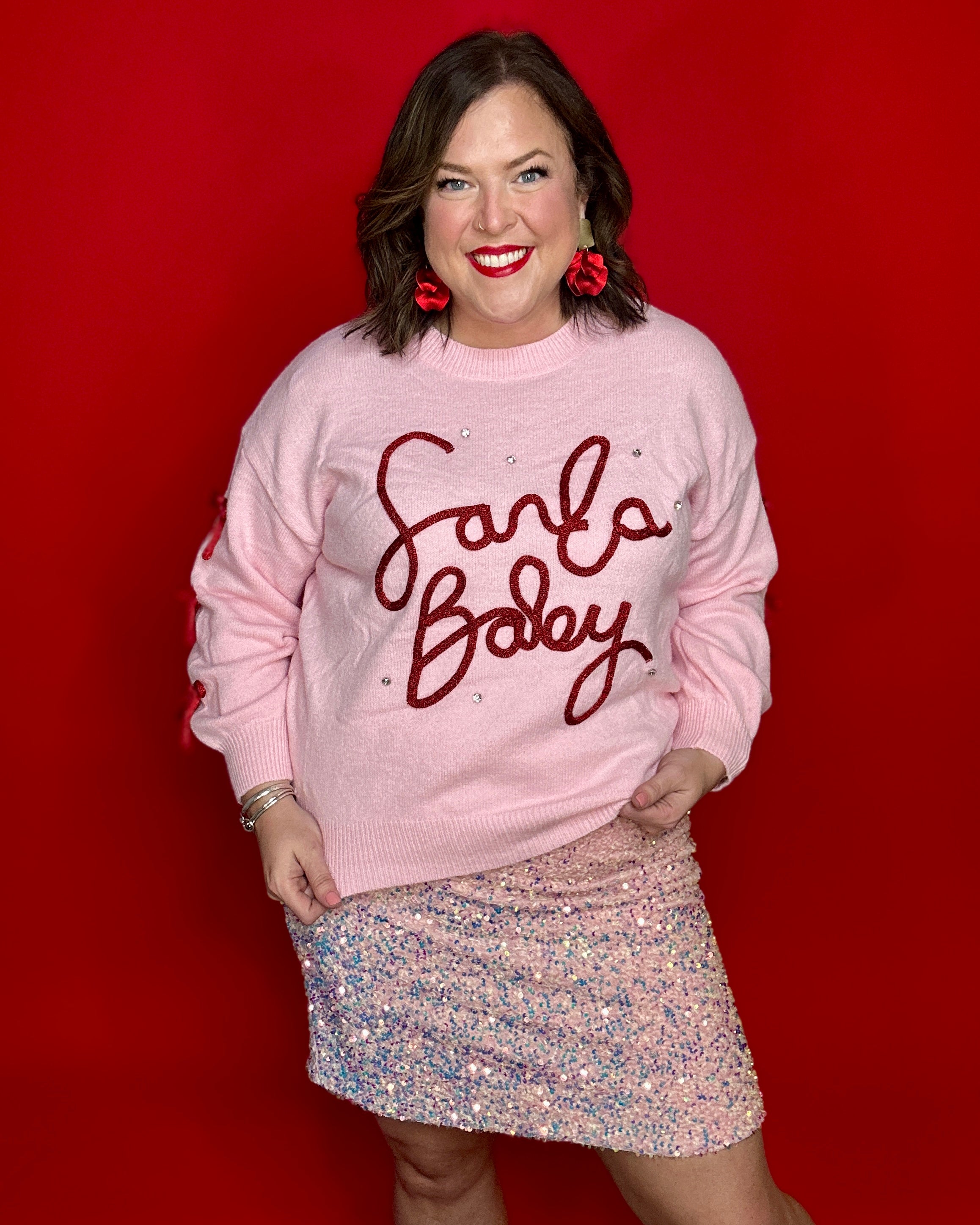 Pink & Red Santa Baby Sweater