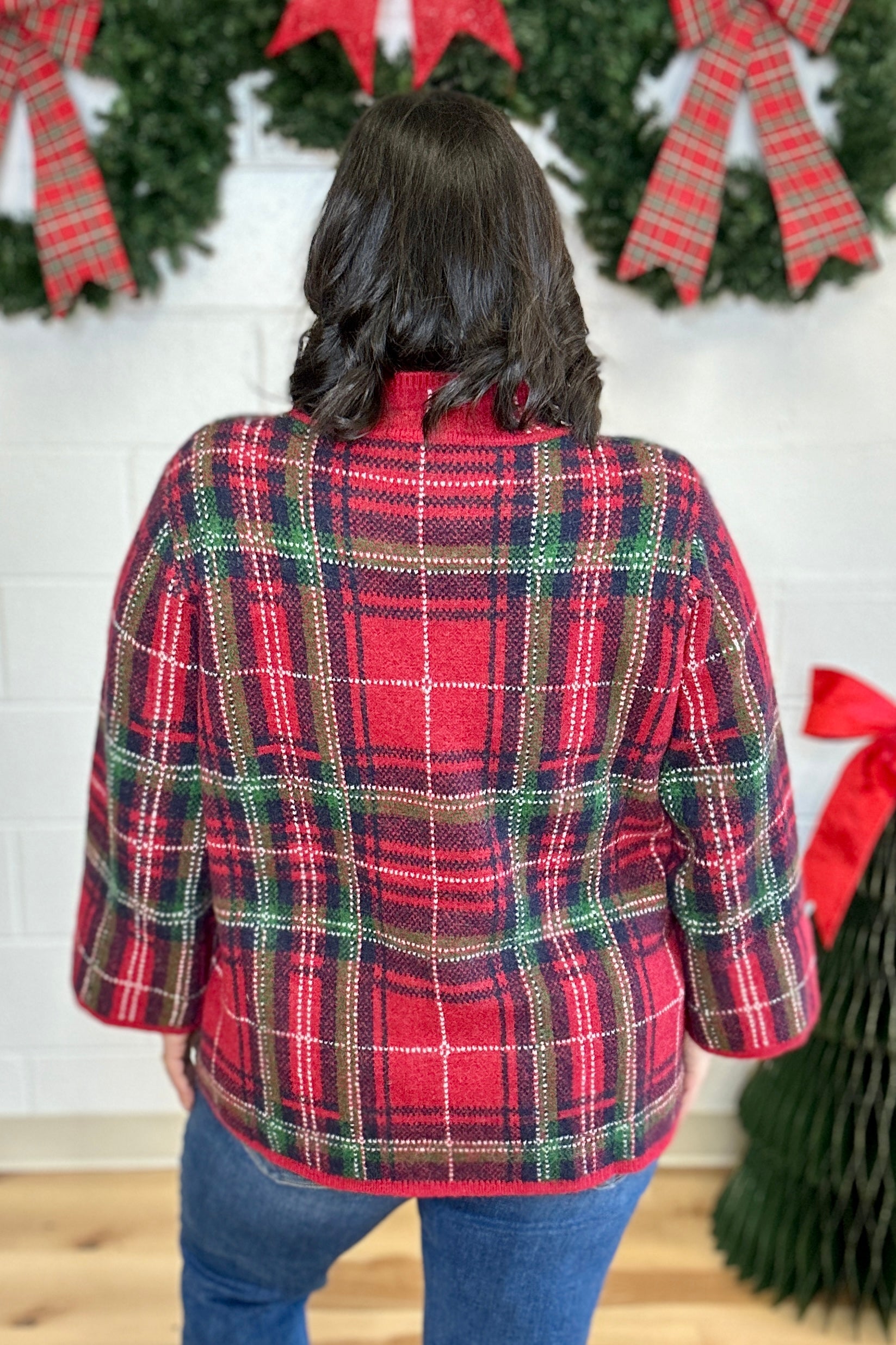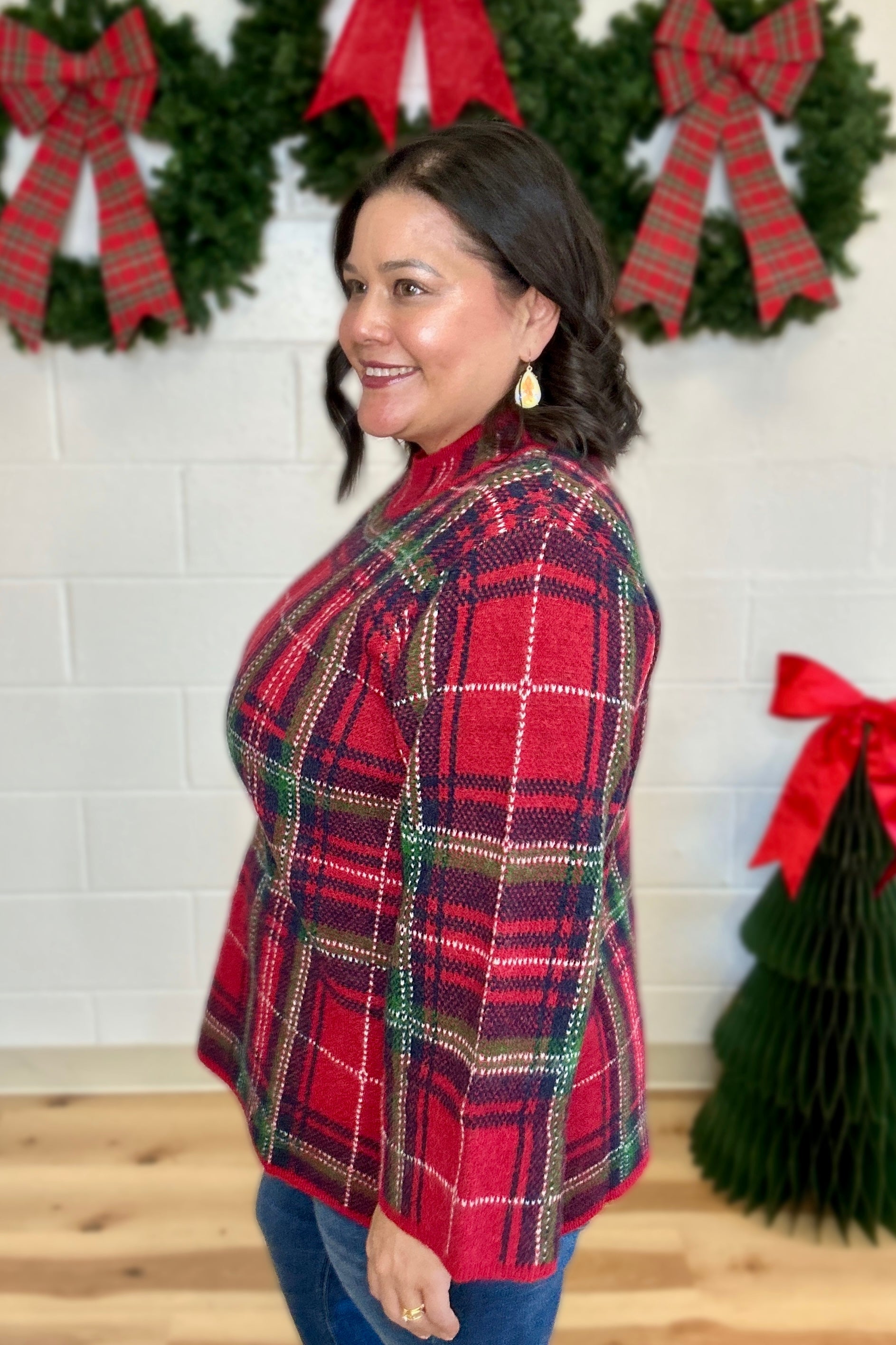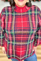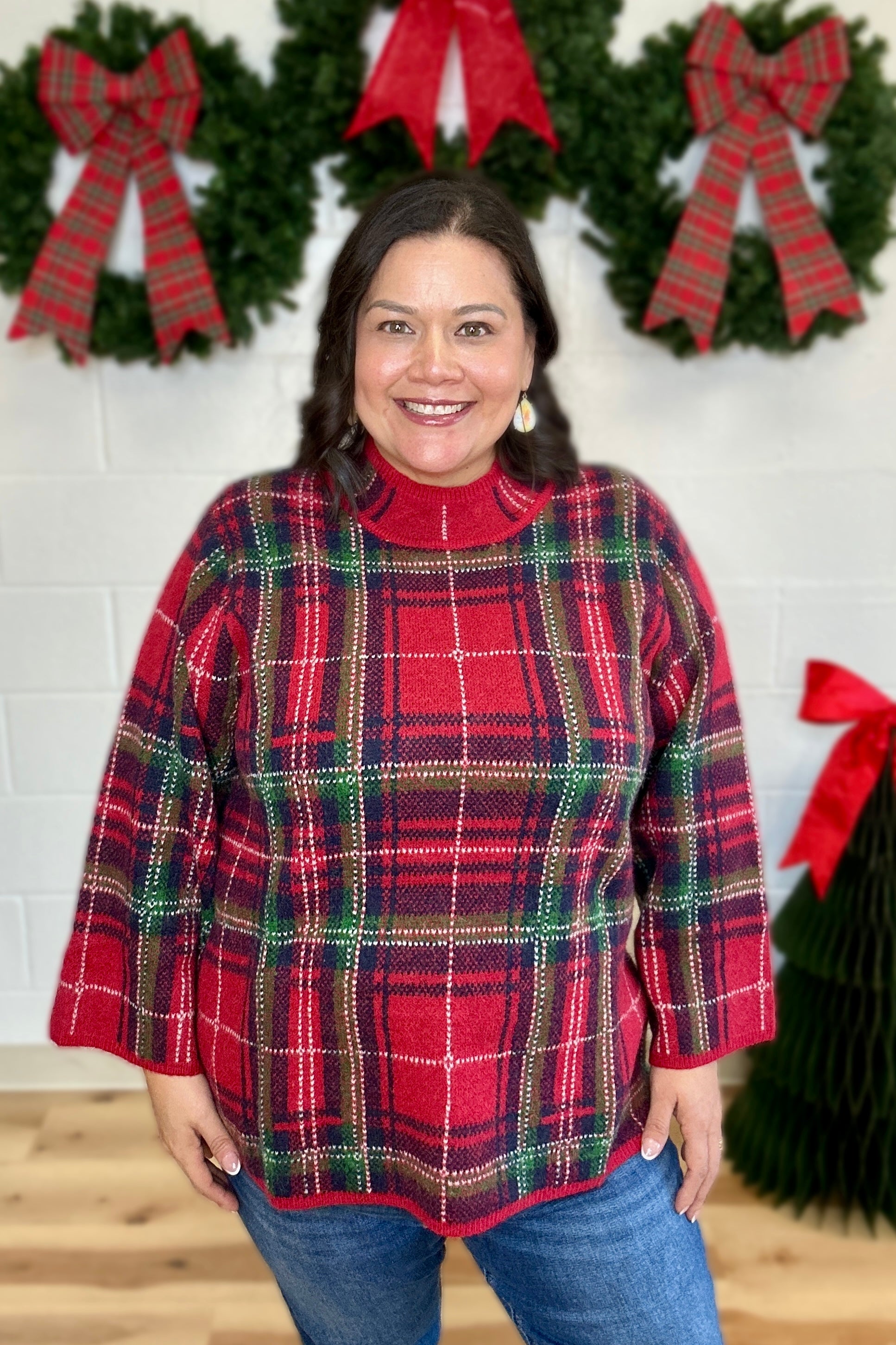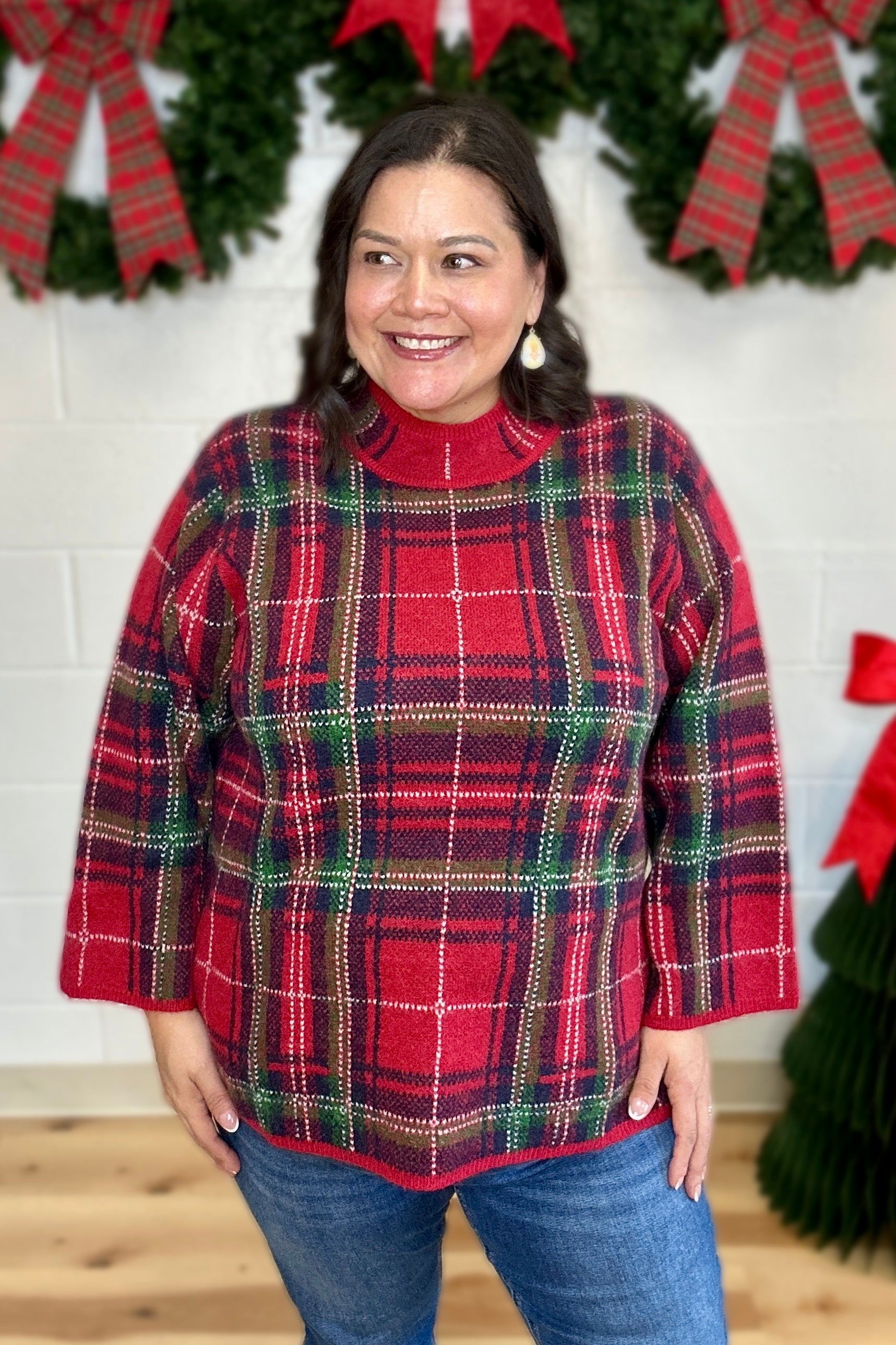 This plaid long sleeve sweater top showcases a relaxed silhouette combined with a mock neck design, offering both comfort and a contemporary edge. Constructed from medium-weight knit fabric, it provides substantial warmth while remaining breathable. The unlined, non-sheer material ensures a clean, polished appearance suitable for layering or standalone wear in diverse settings.