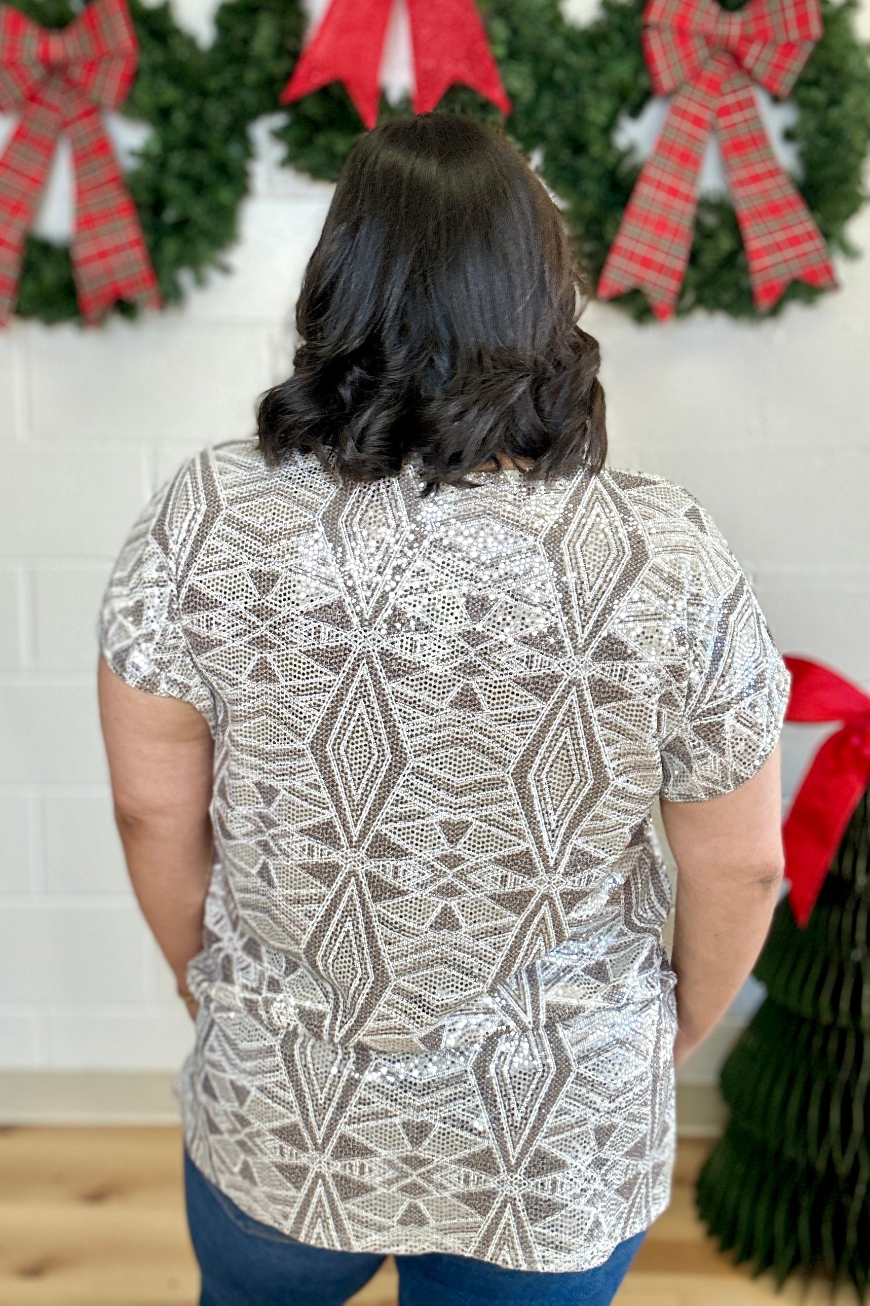 Silver Sequin Geometric Hi Lo Top