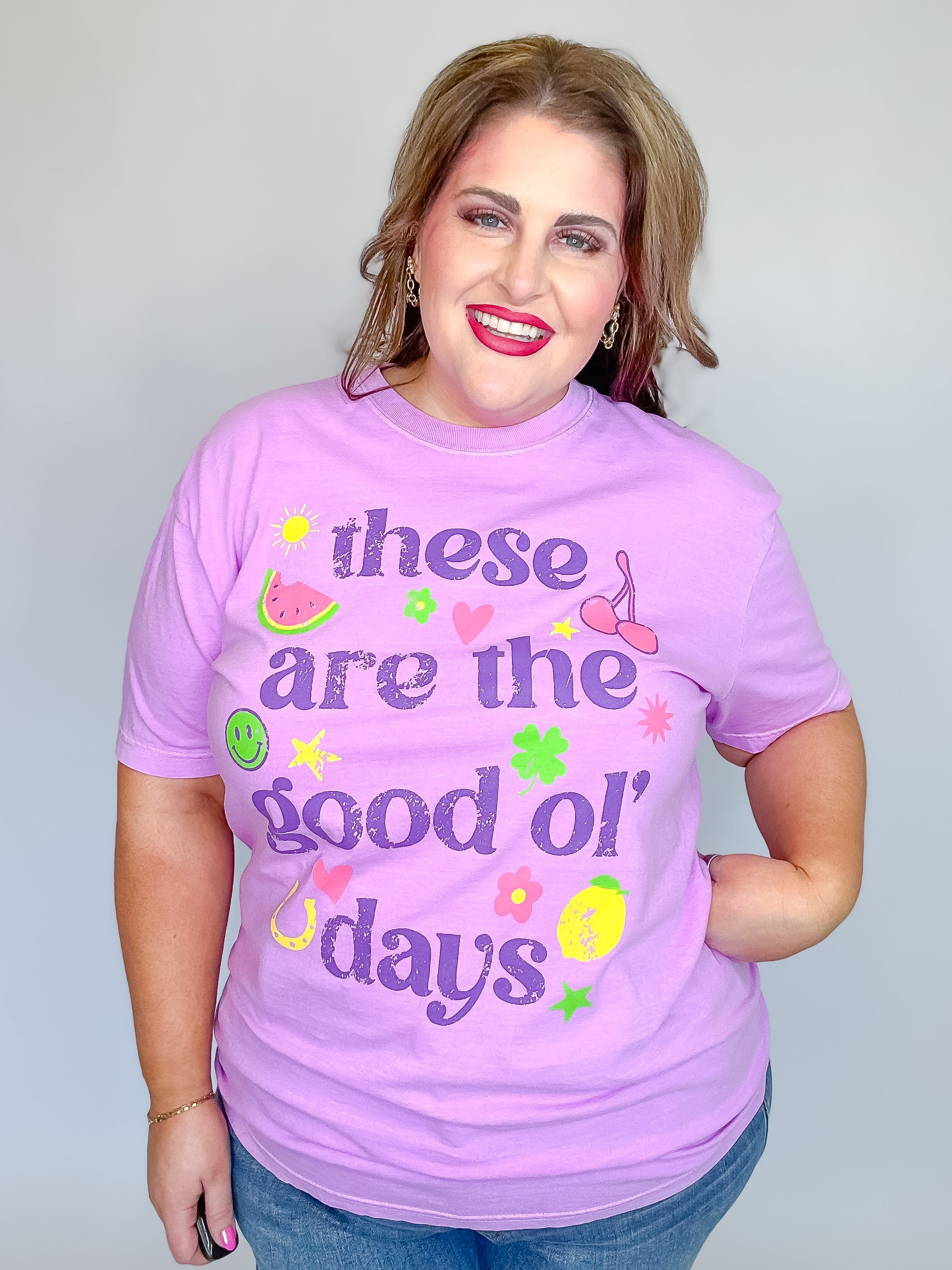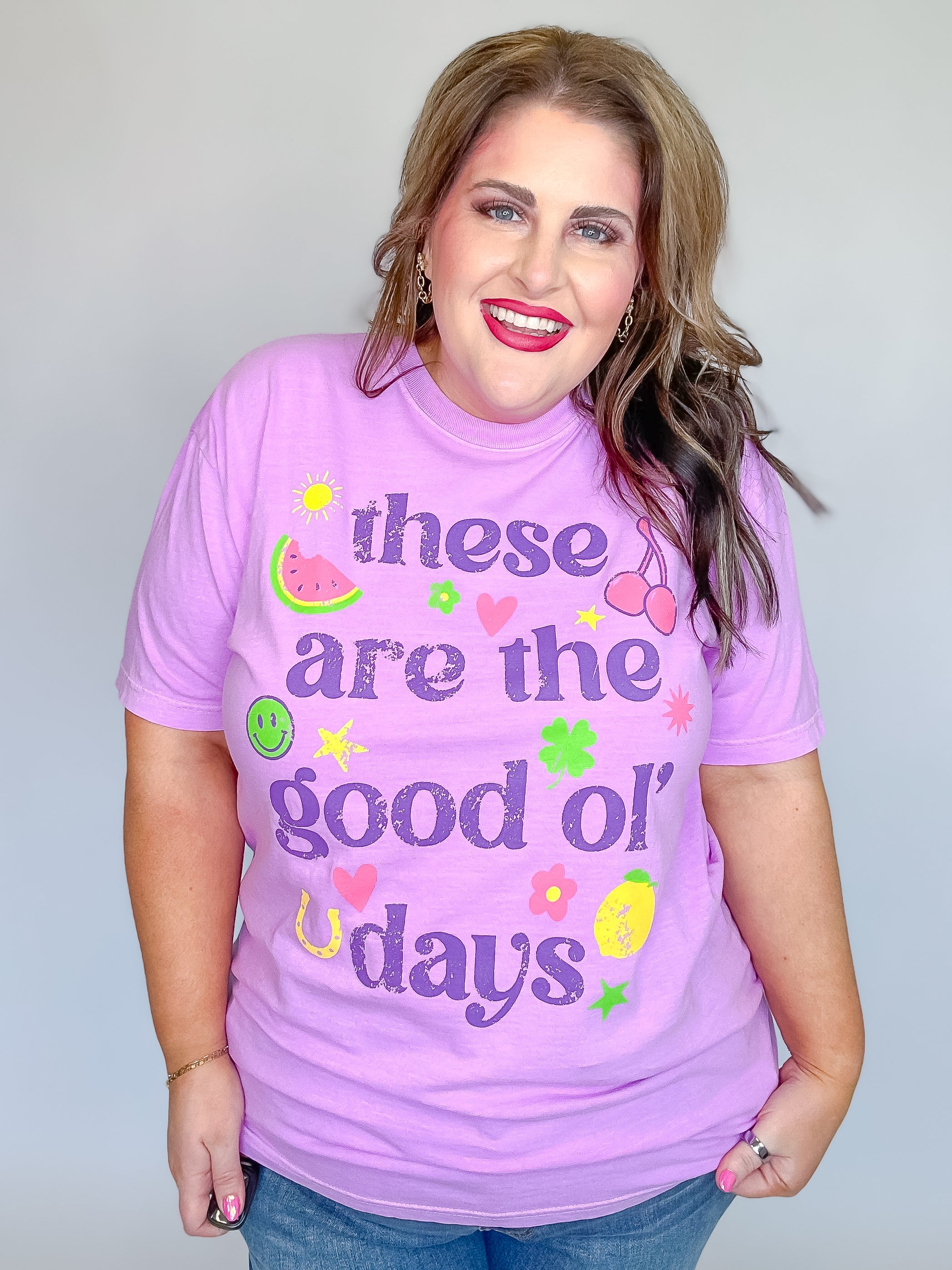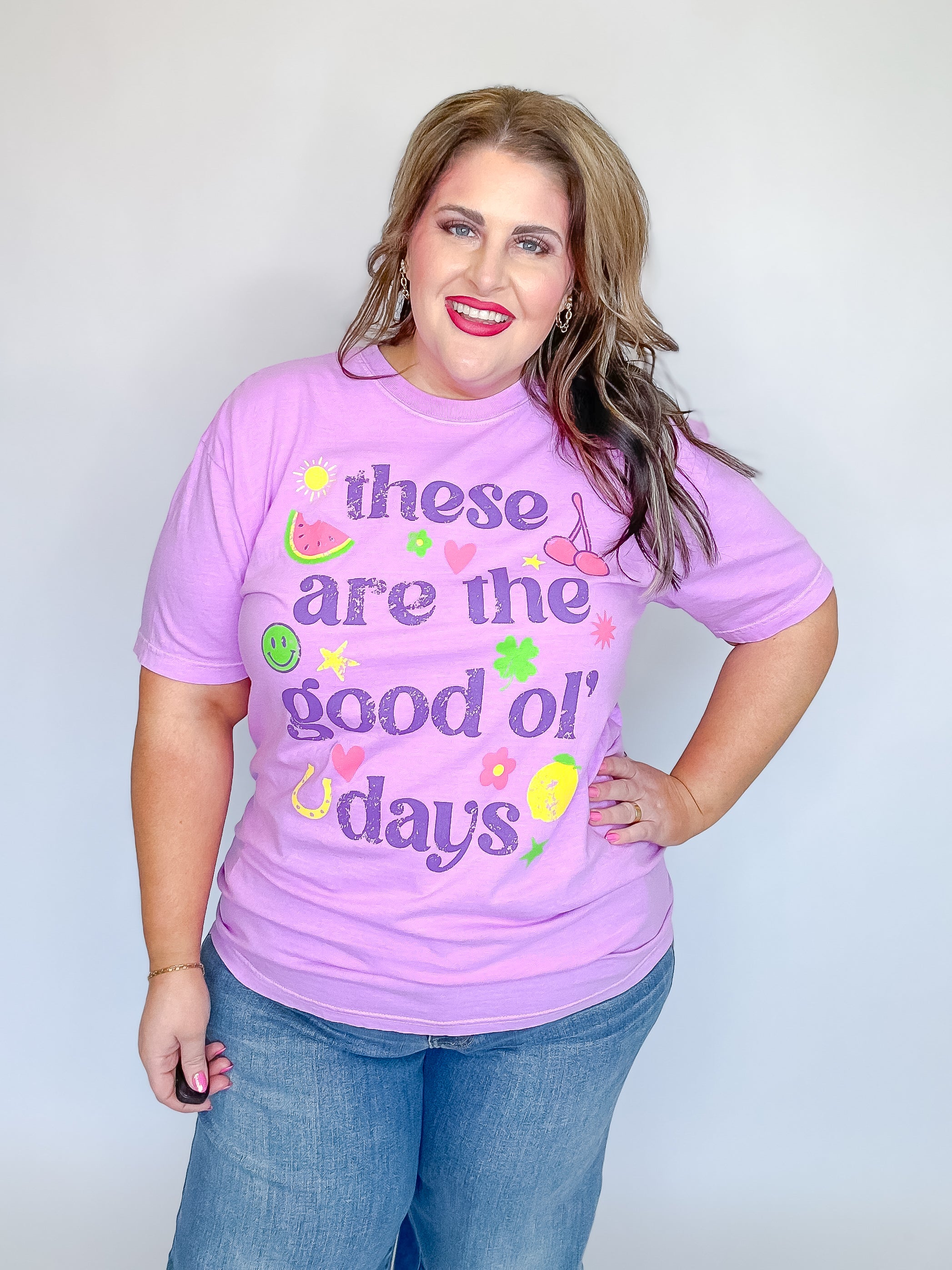 Bright, whimsical, and full of personality, this tee is a reminder to savor the now and celebrate the little things. Soft, comfy, and easy to style with your favorite denim or cutoffs, it’s perfect for summer days, road trips, and memory-making moments.