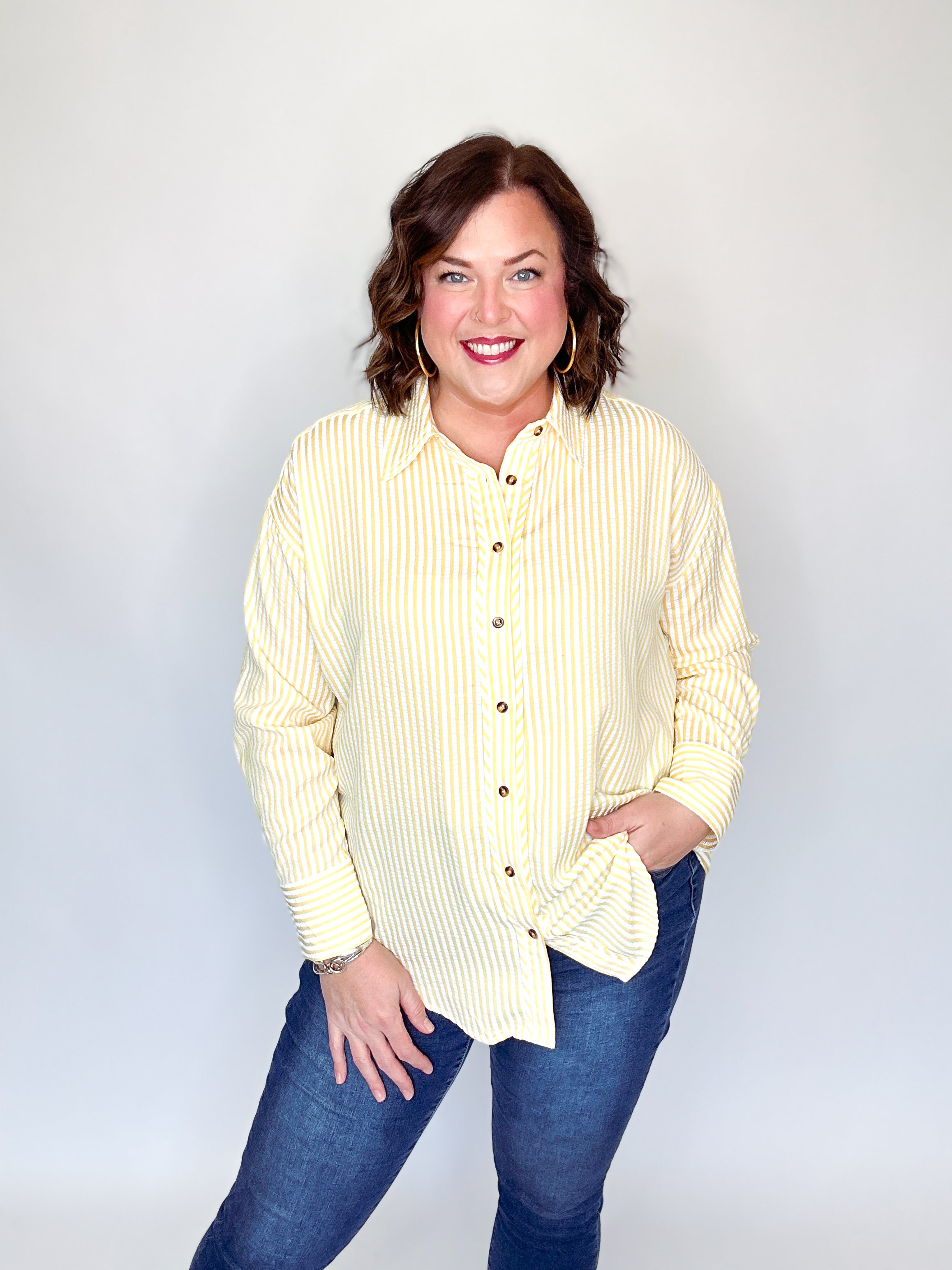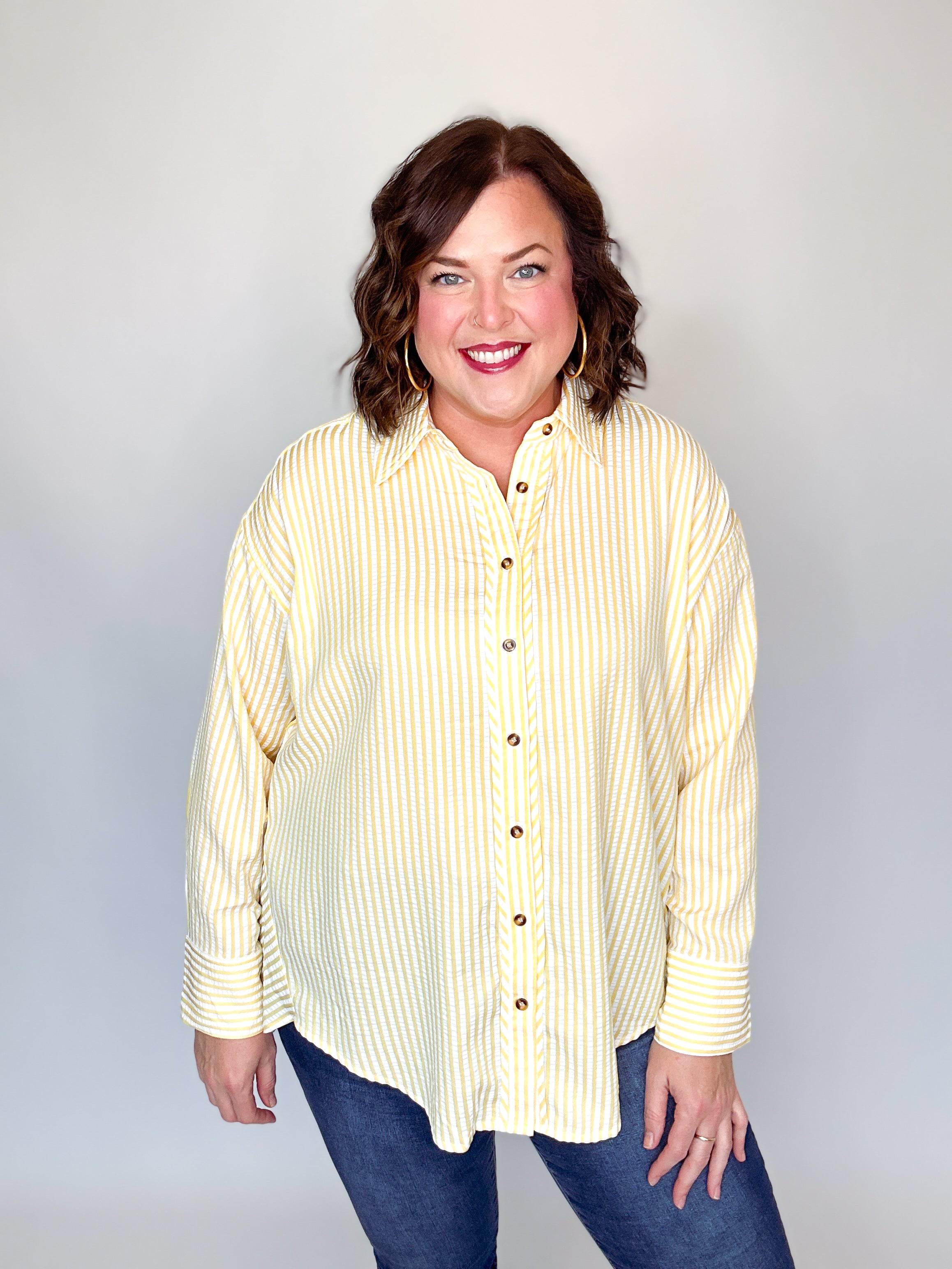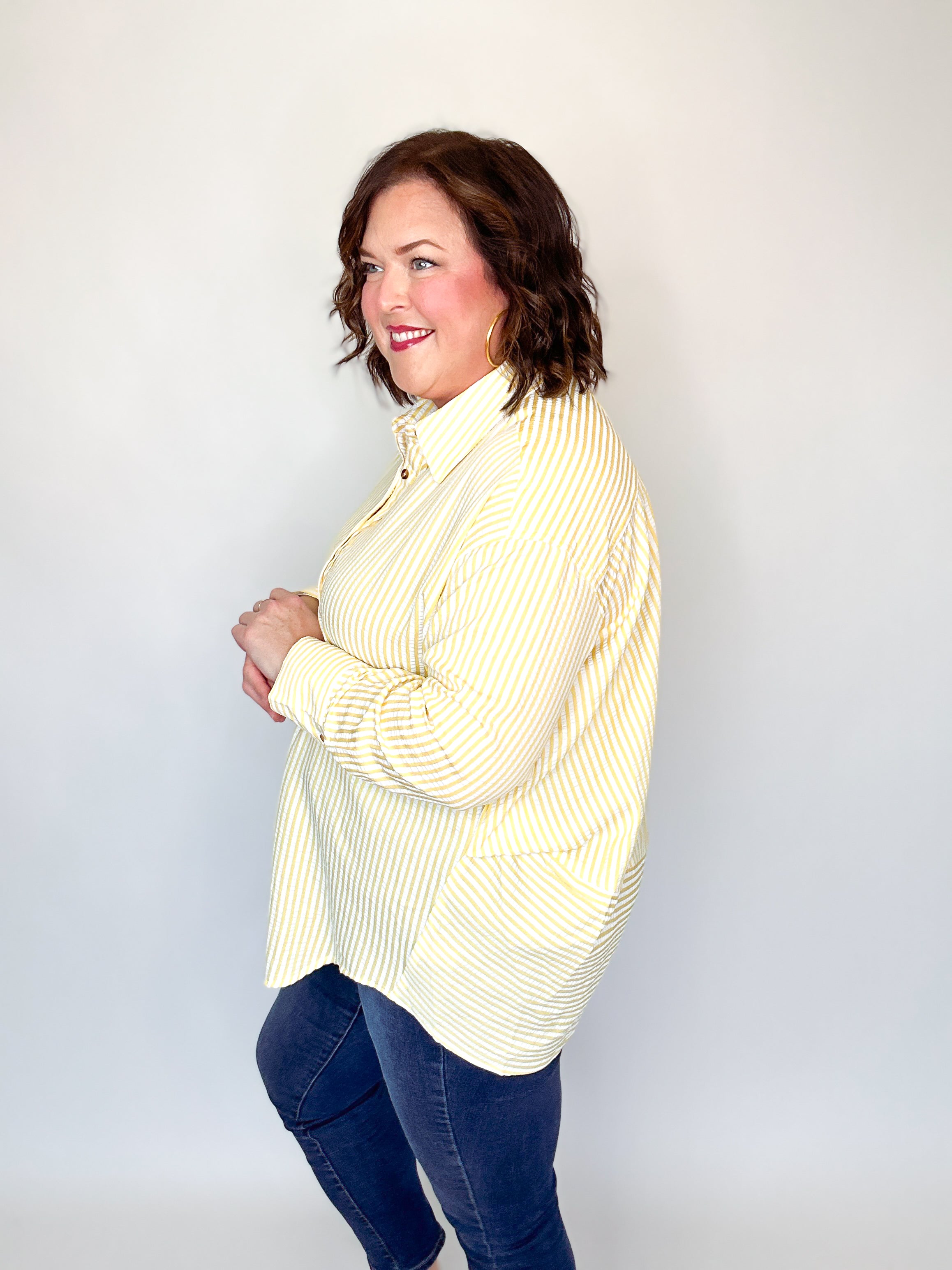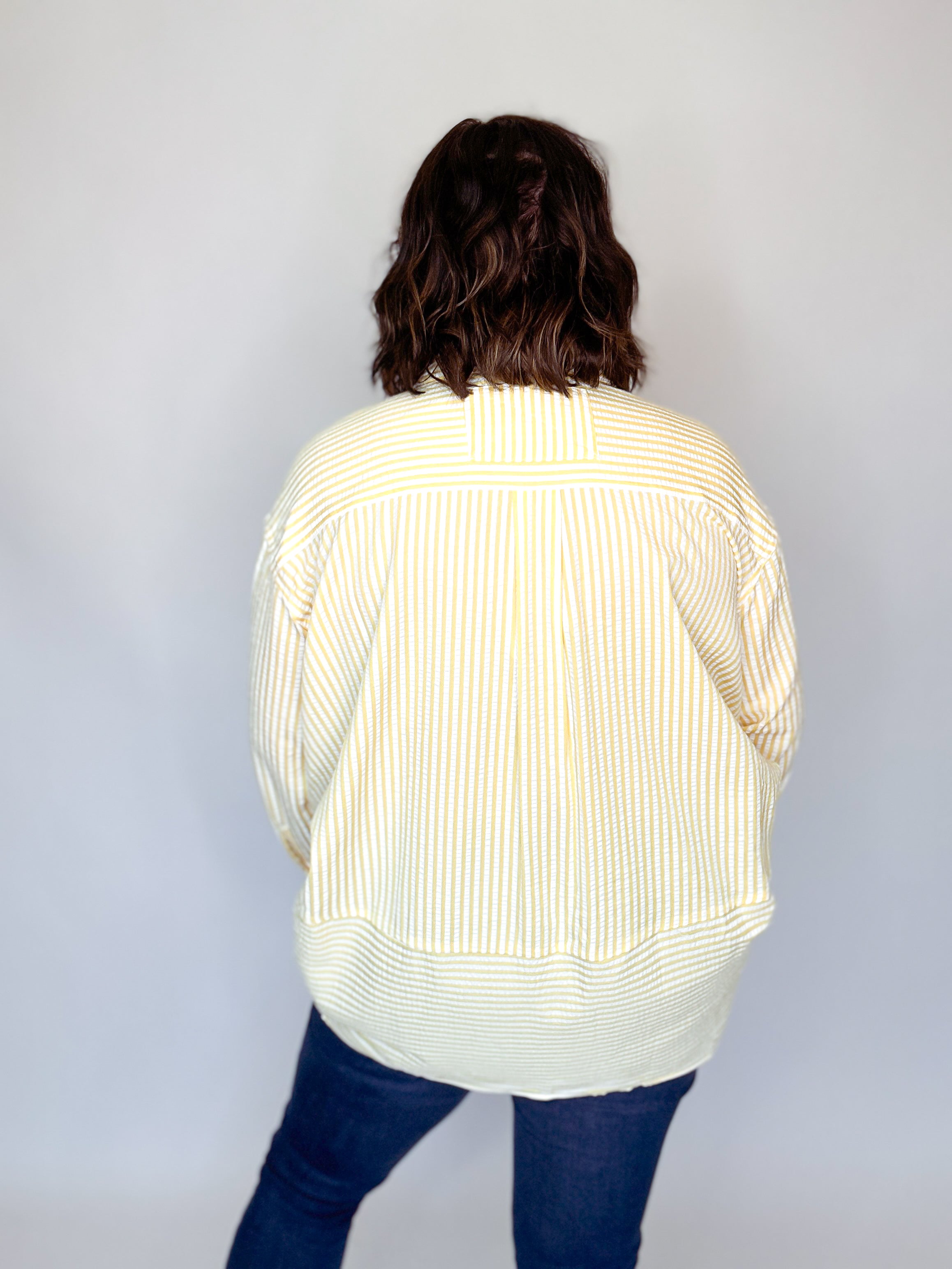 Yellow & White Seersucker Button Down Top