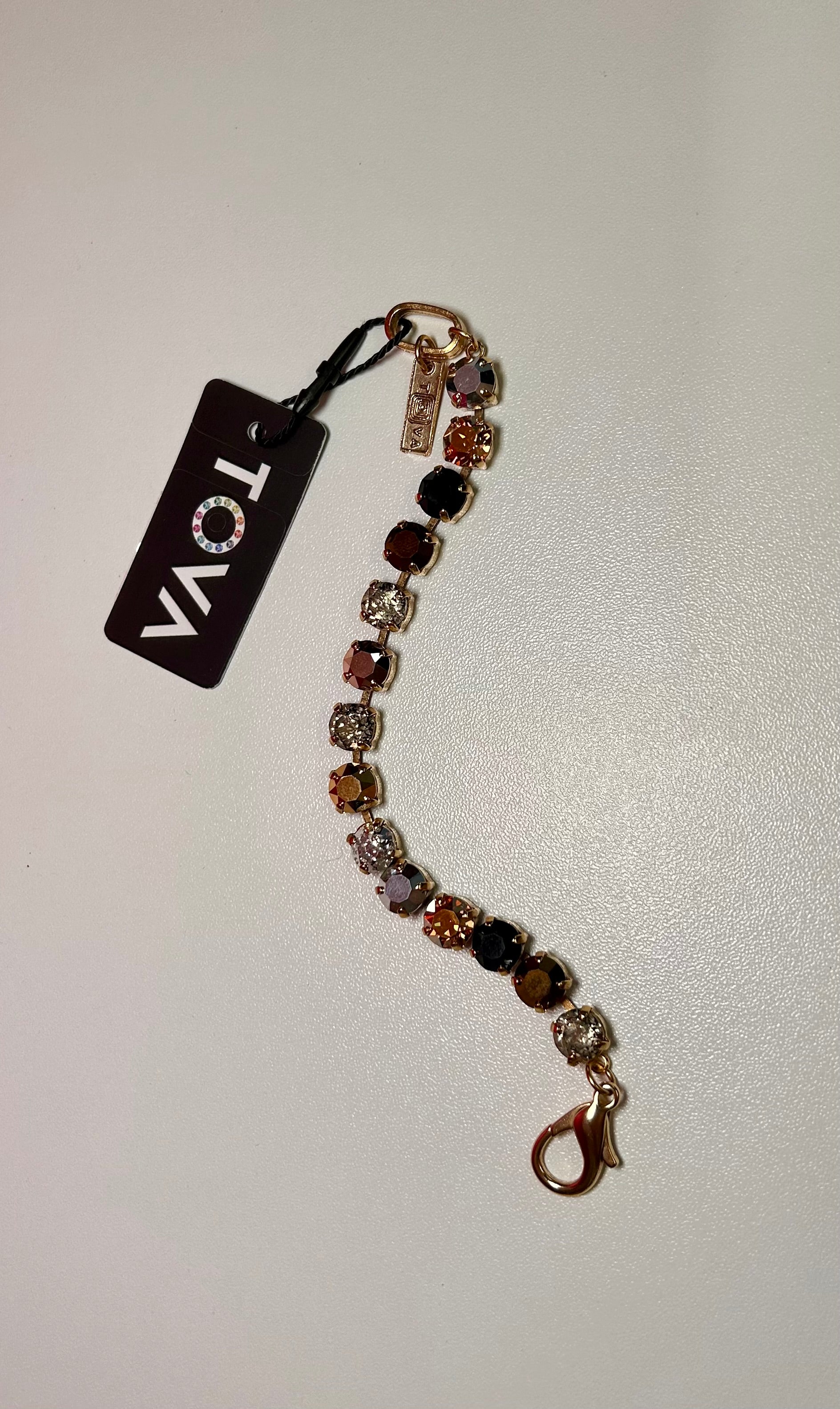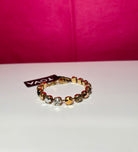 This Izzy Bracelet in Sunset is the perfect way to shine! Its high quality crystals and Antique Gold plated Brass base metal ensure your sparkle won't go unnoticed! Get ready to add some serious bling to your 'fit!
