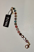 This Izzy Bracelet in Sunset is the perfect way to shine! Its high quality crystals and Antique Gold plated Brass base metal ensure your sparkle won't go unnoticed! Get ready to add some serious bling to your 'fit!