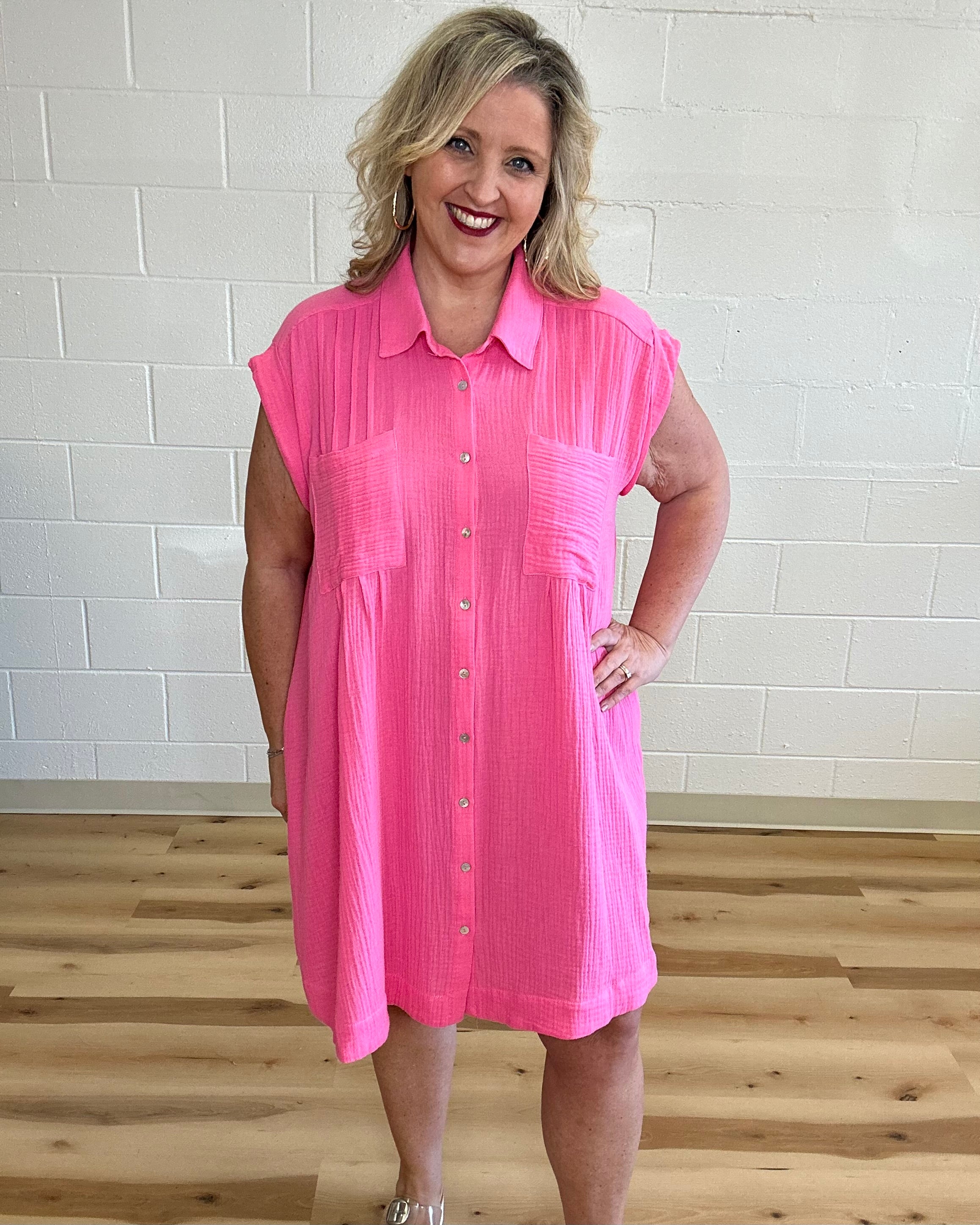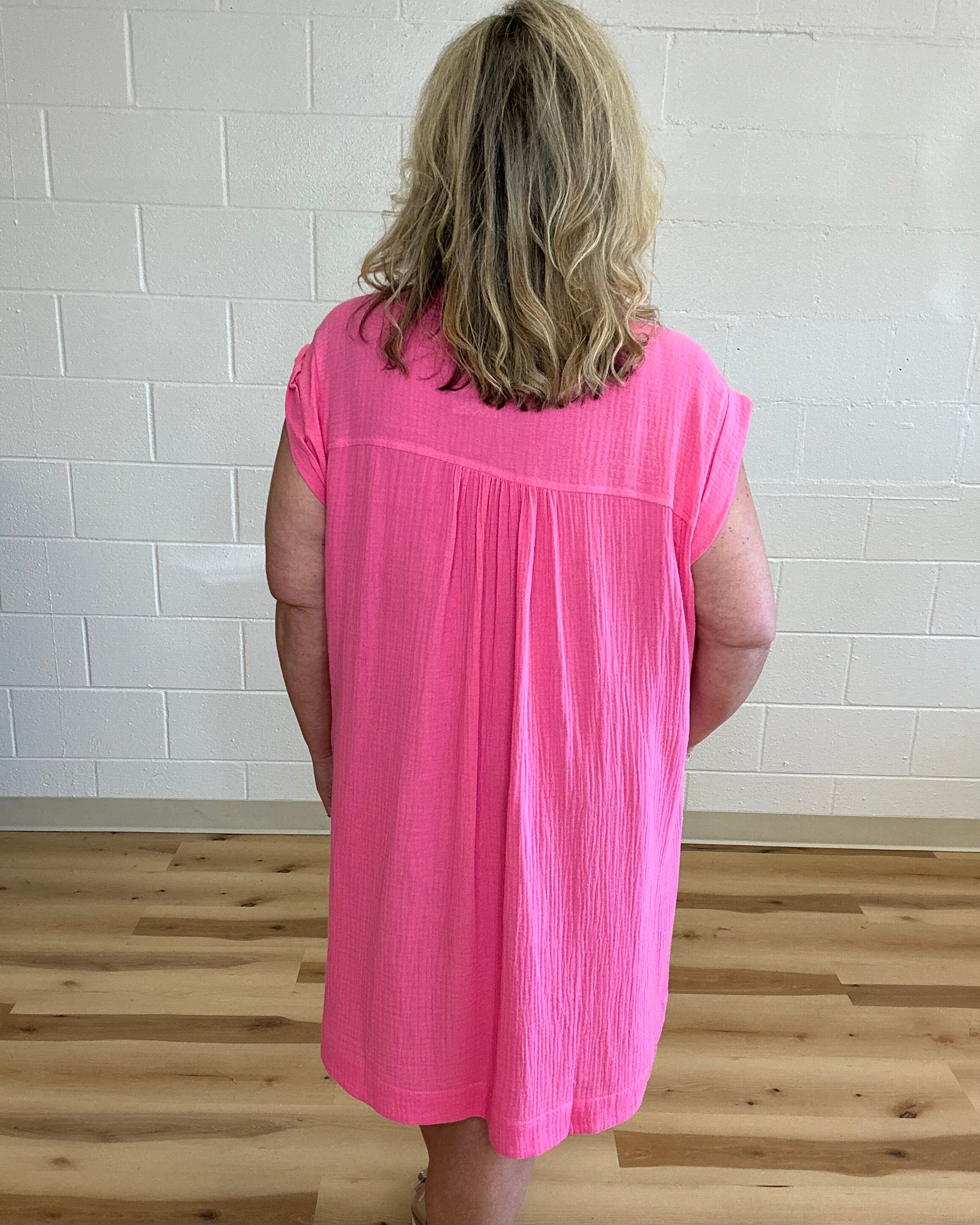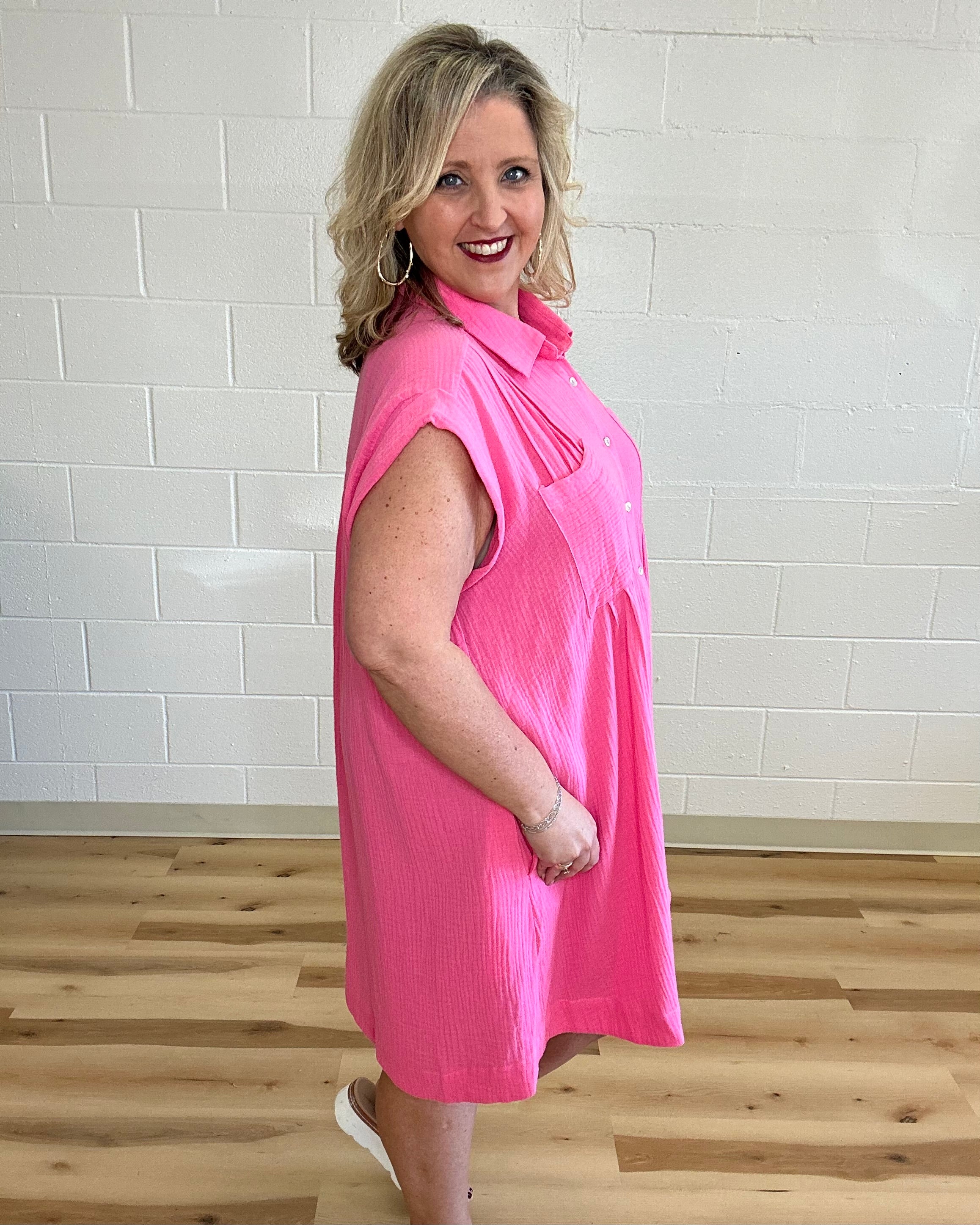 Pink Gauze Button Front Dress