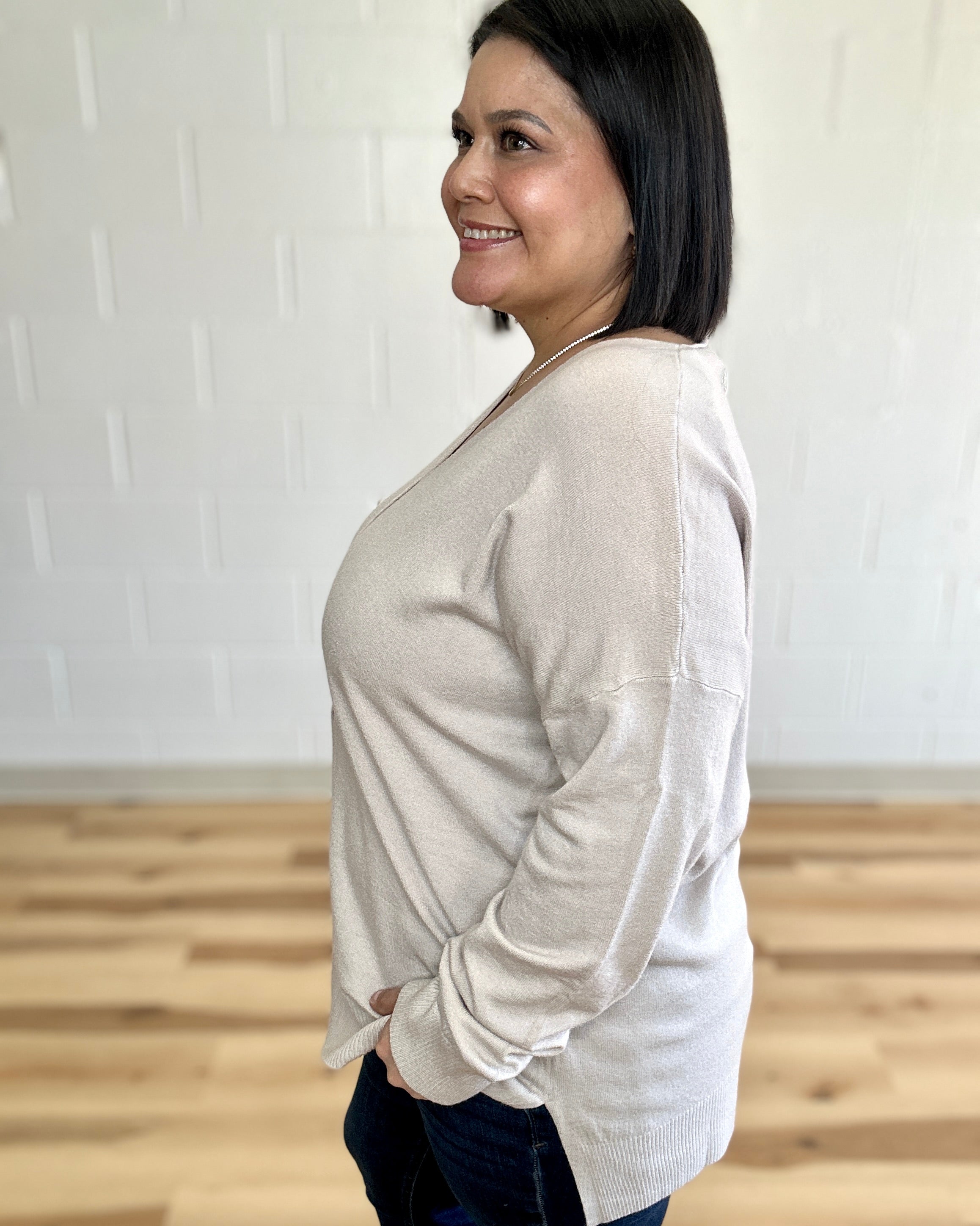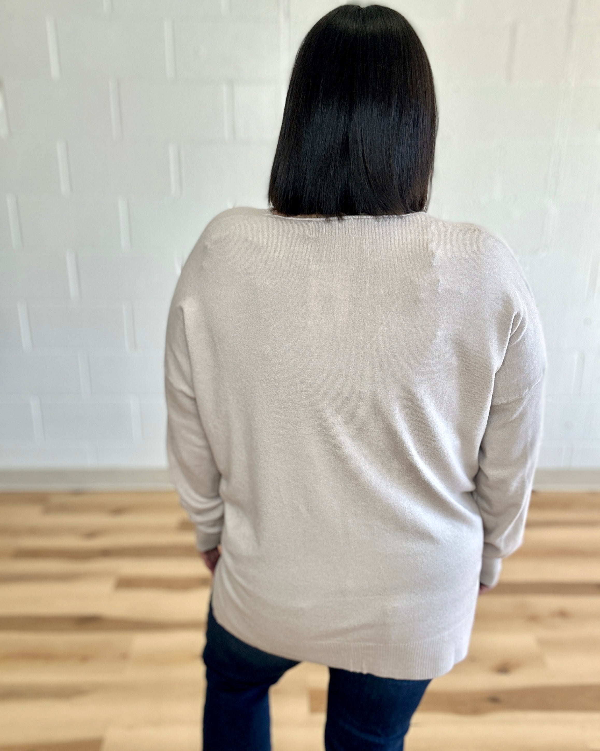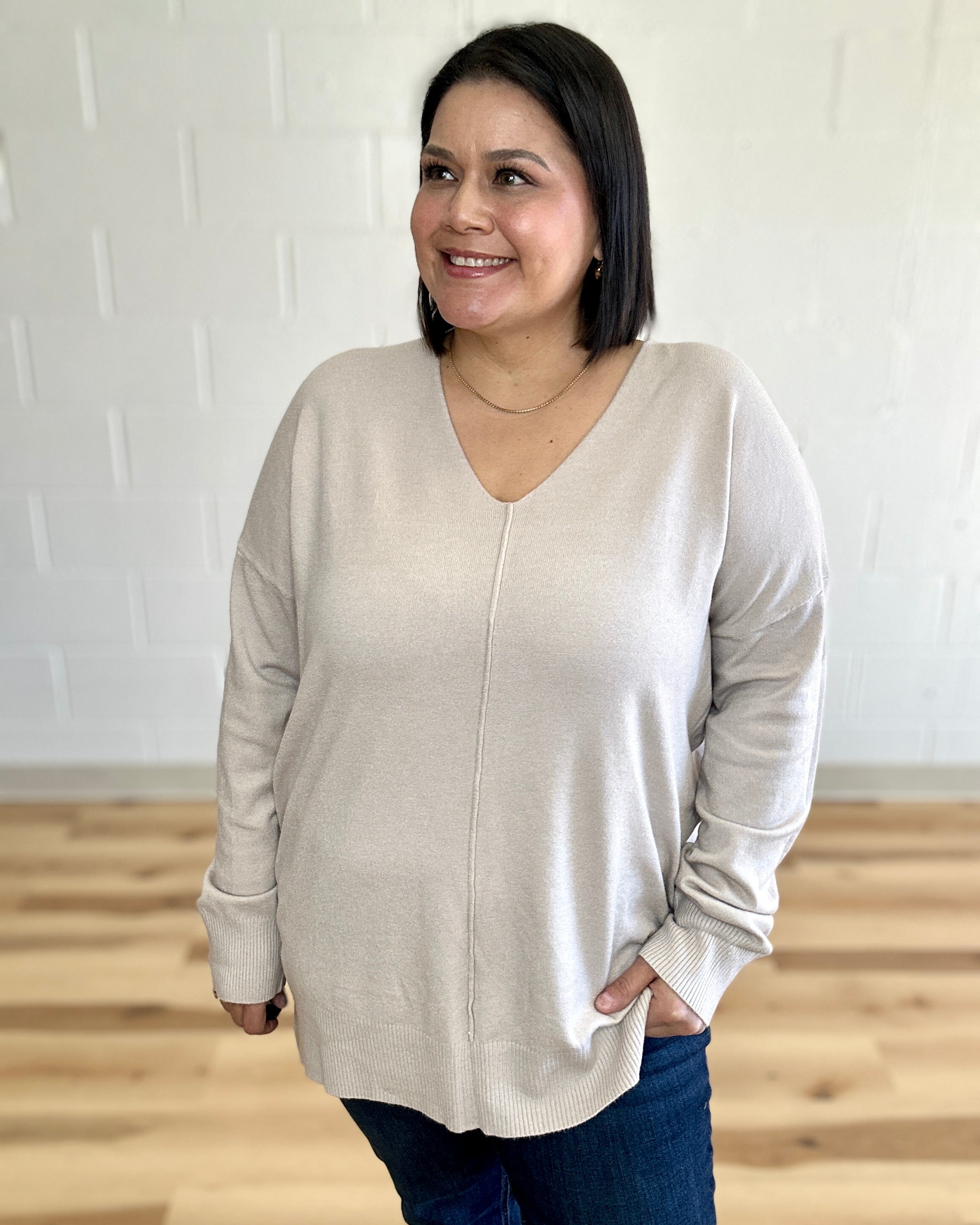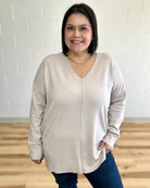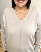 Embrace effortless comfort with this garment-dyed V-neck sweater, crafted for a relaxed, flattering fit. The soft fabric drapes beautifully while ribbed hems and cuffs keep everything in place. Perfect for layering or wearing solo, this piece brings understated elegance to your everyday wardrobe. The front-seam design adds subtle visual interest, making it a versatile staple you'll reach for again and again.