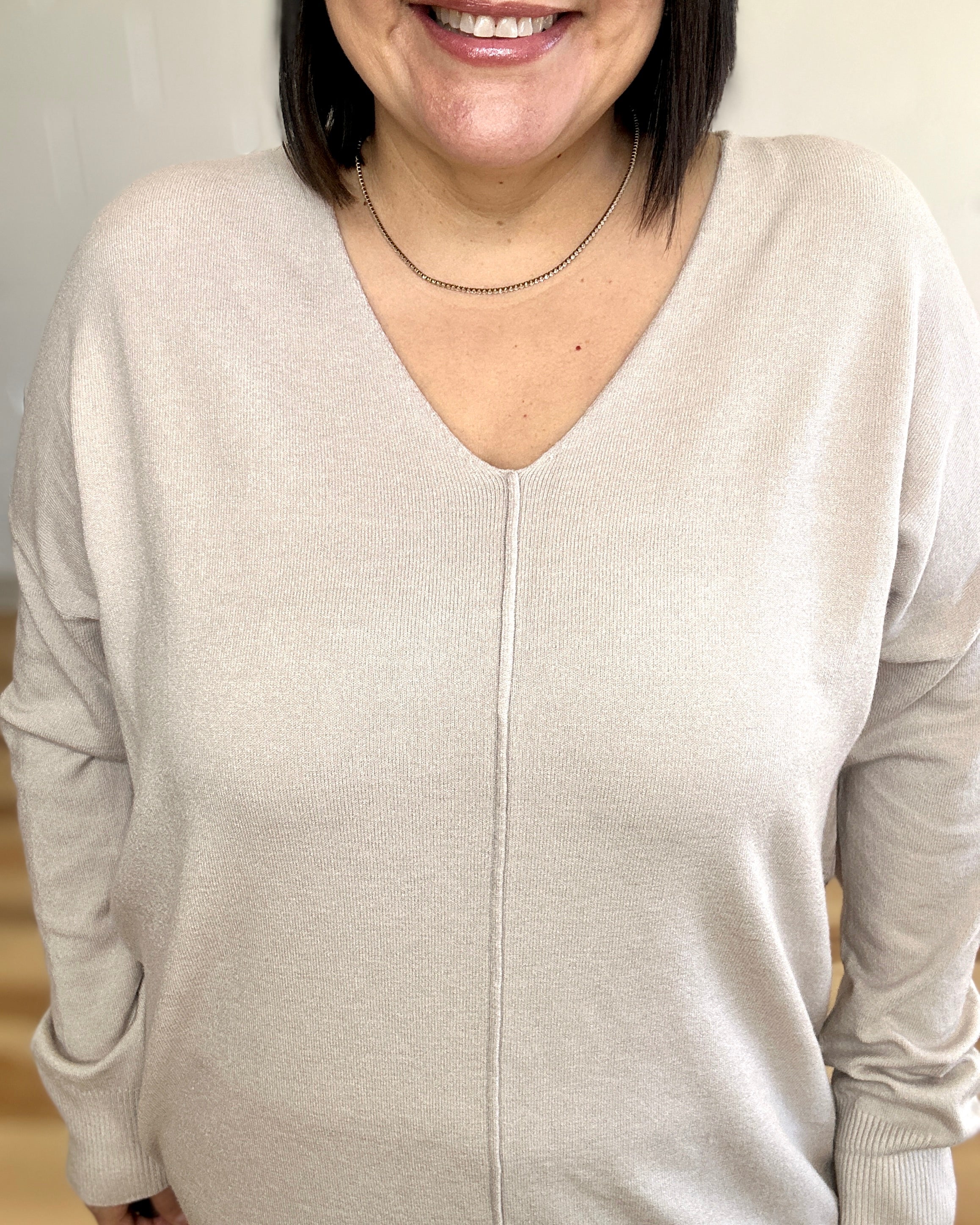 Beige Front Seam V-Neck Top