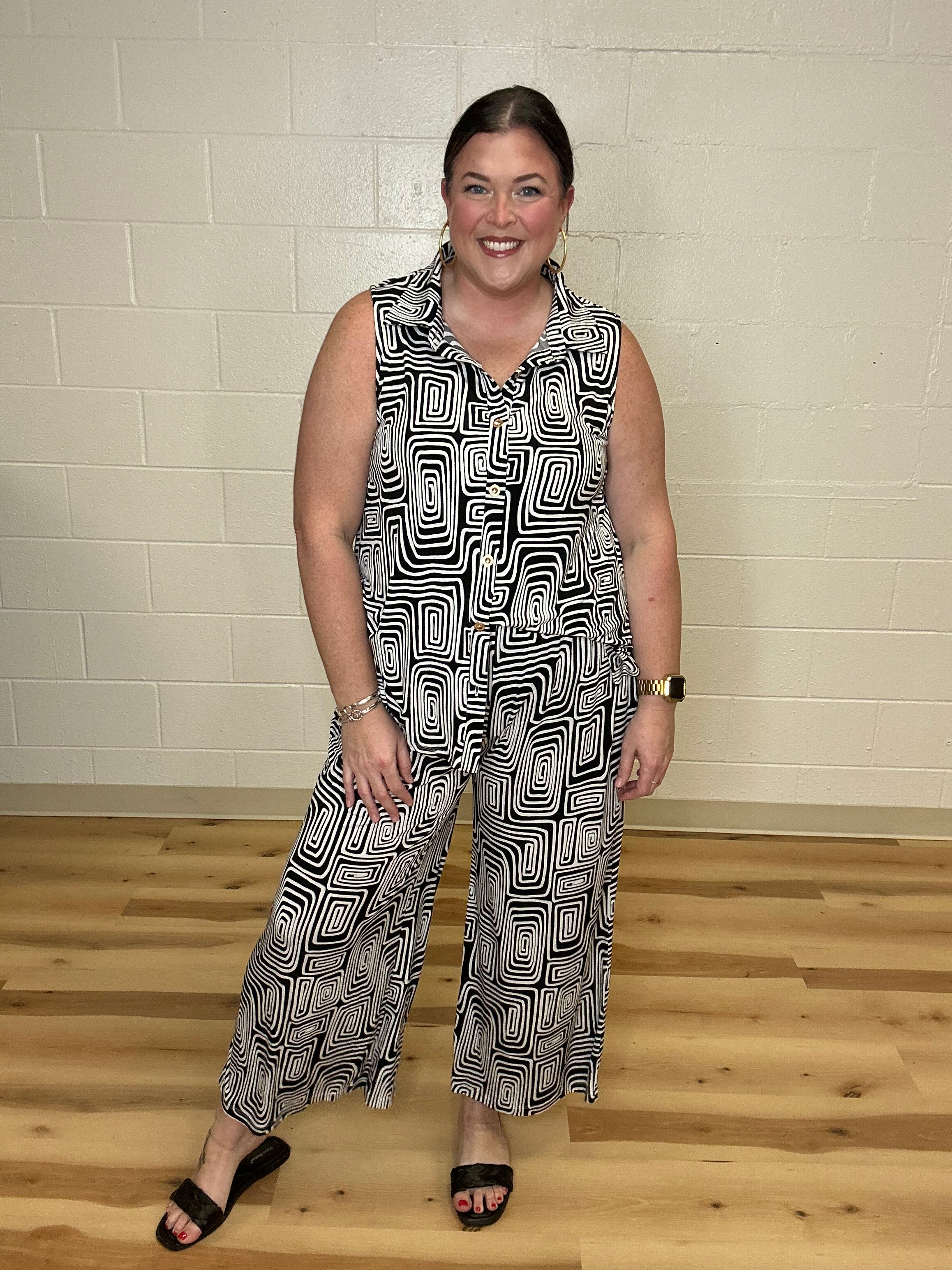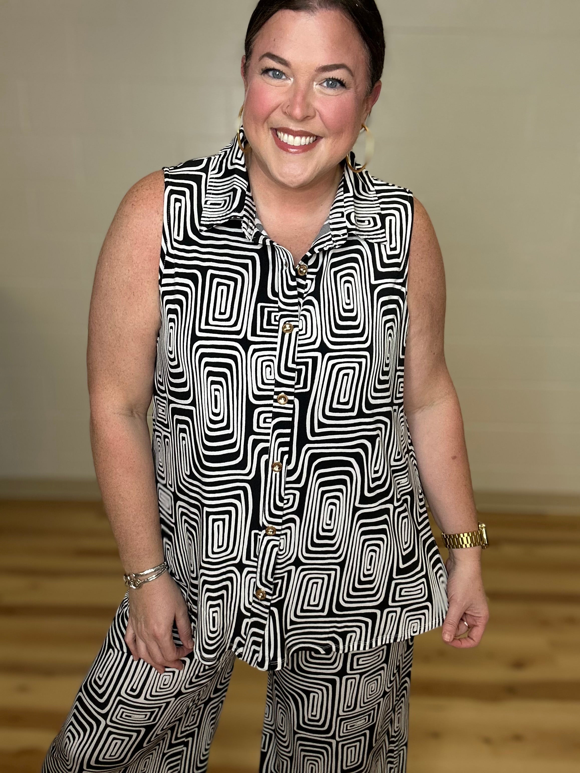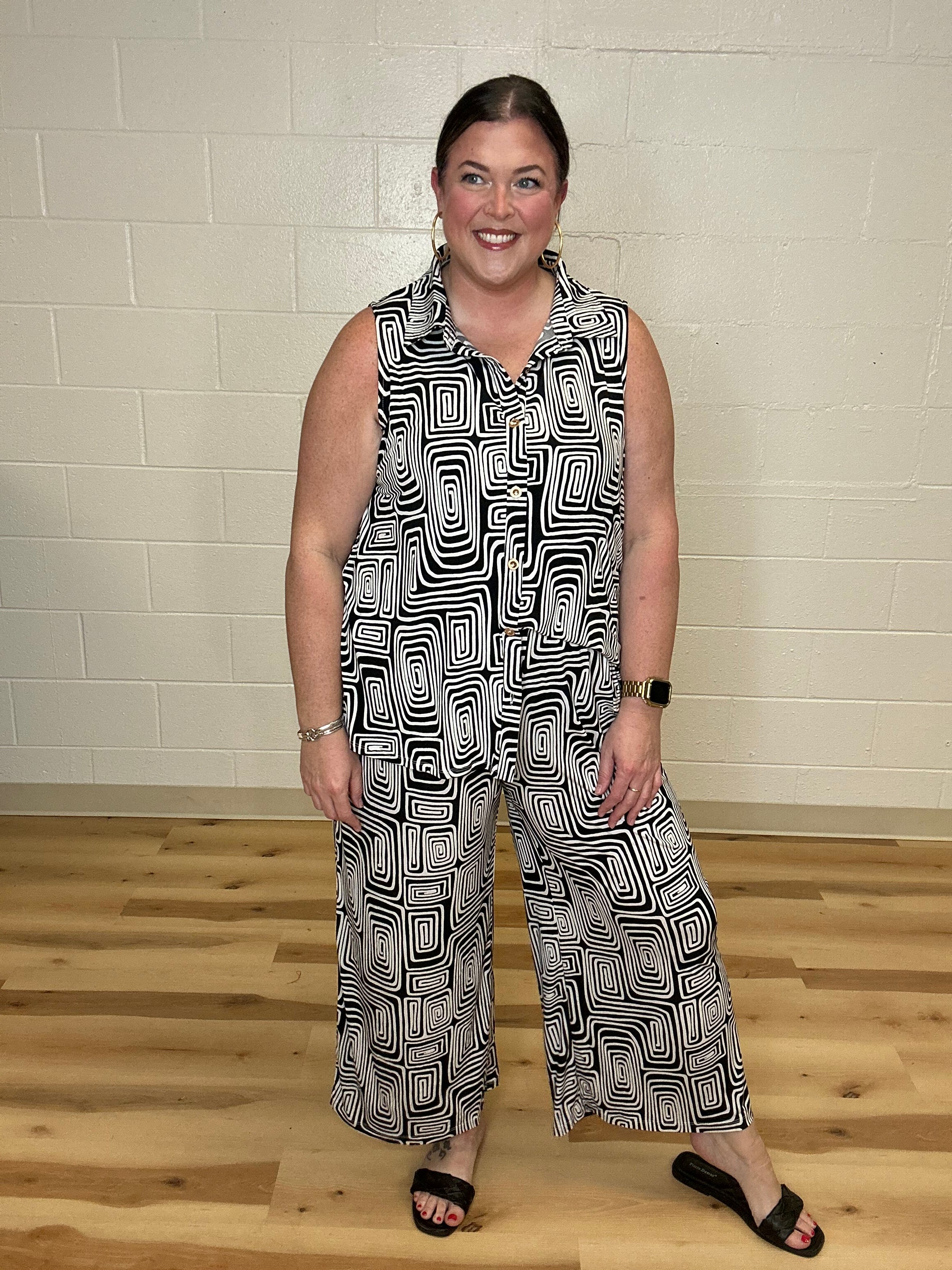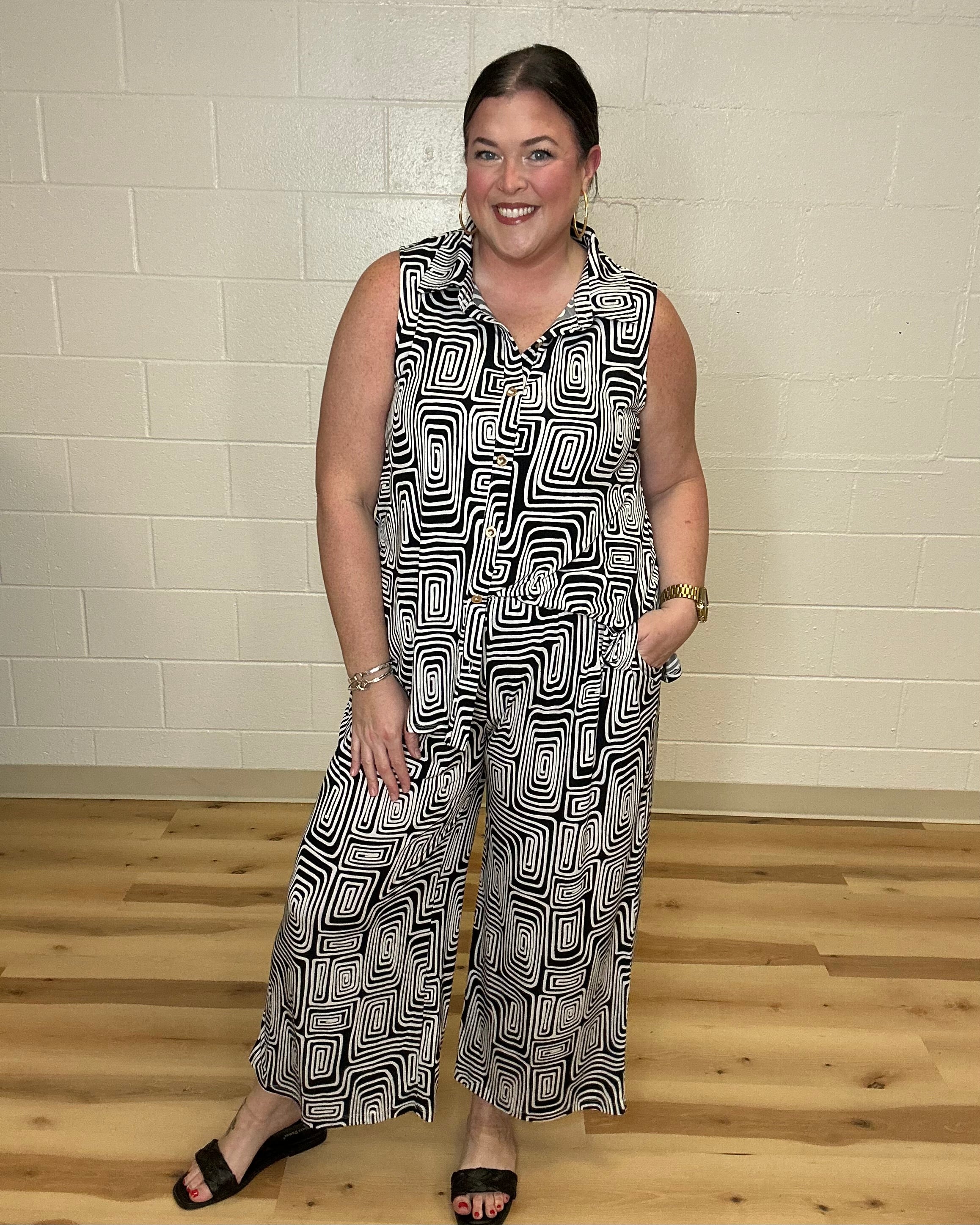 Embrace understated elegance with the Shoreline Set, a refined two-piece ensemble designed for warm-weather versatility. The sleeveless blouse features refined collar detailing and thoughtful button accents, while the relaxed-fit pants offer effortless comfort without compromising polish. Whether you're heading to a summer retreat or elevating your everyday wardrobe, this coordinated set delivers a cohesive, sophisticated look that transitions seamlessly from day to evening.