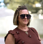 Earhart Sunglasses by DAX Eyewear These large aviator sunglasses are the perfect blend of classic and modern. With their sleek design and timeless appeal, you'll feel all of the fashionista vibes. Whether you're heading to the beach or brunch, these frames will make you stand out in style. Hair-Friendly and Tangle-Free No more hair mishaps when you want to rock your sunglasses on top of your head! Our innovative, hair-friendly nose pieces are seamlessly integrated into the frame, ensuring a smooth, snag-free experience.