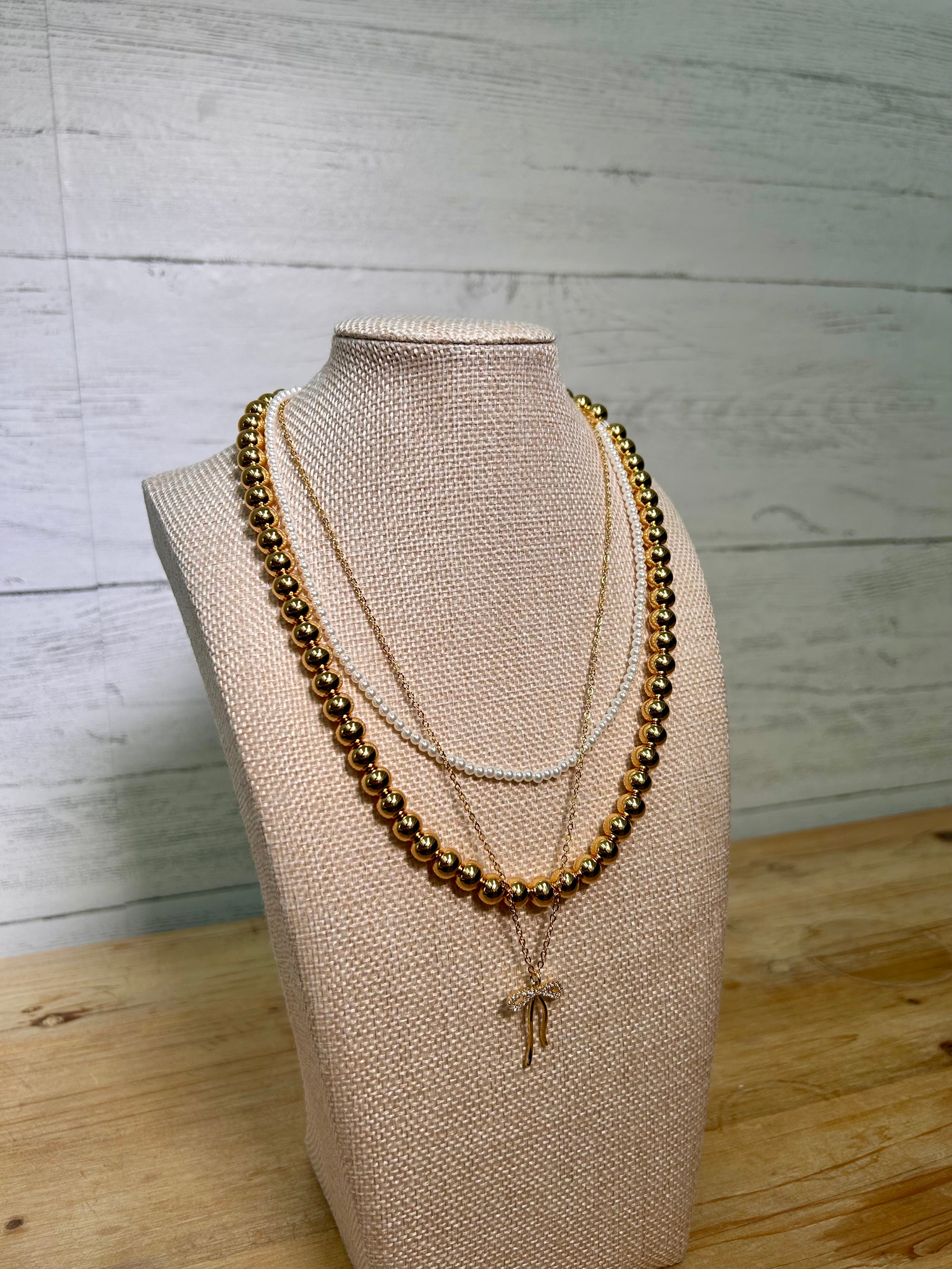 Gold & Pearl Beaded 3 Strand Necklace - Gold Plated