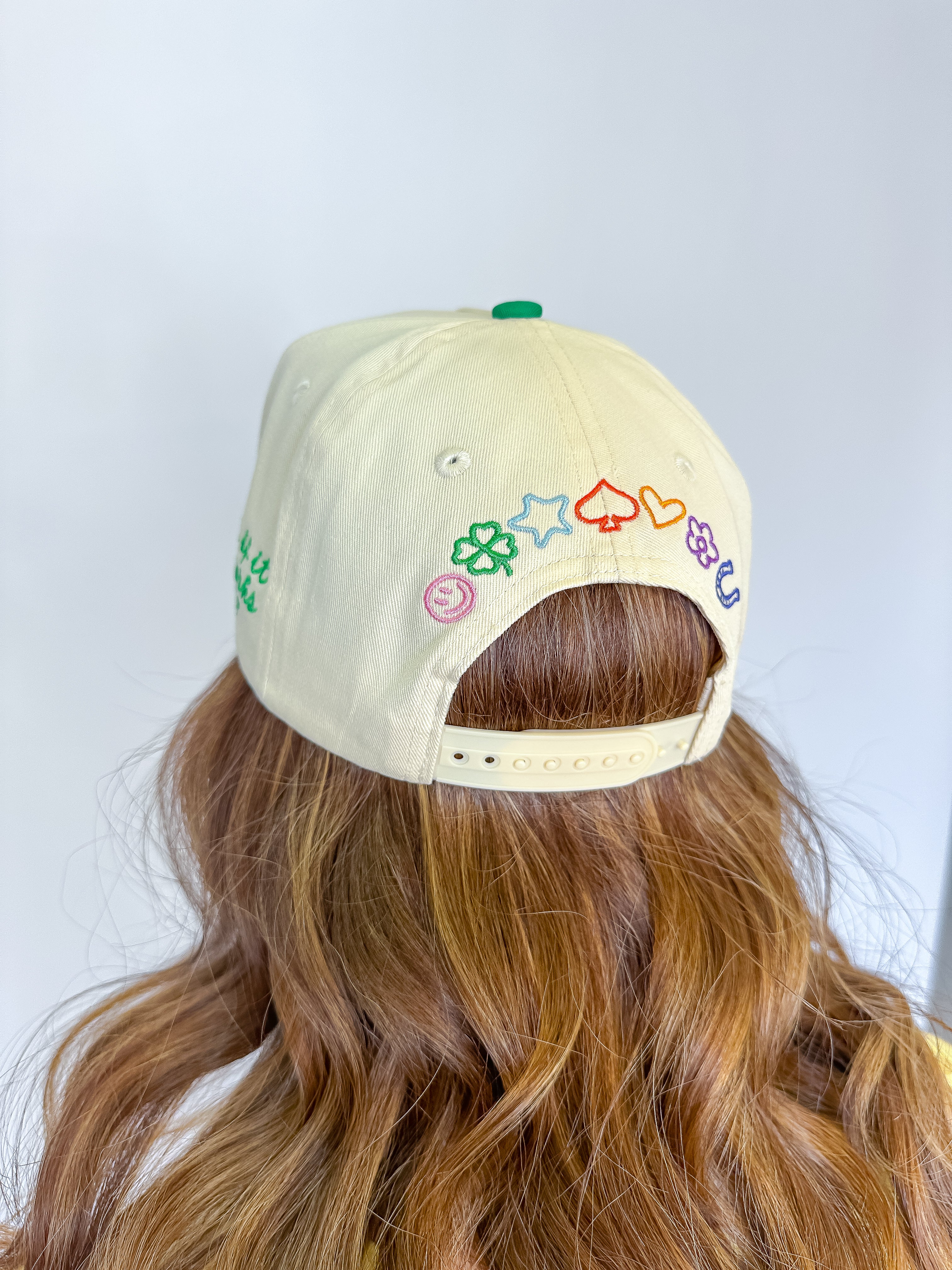 The brim is designed with playful multicolor checkerboard stripes and coordinating checkerboard details, giving it that fun, standout boutique vibe you love. On the side, the sweet affirmation “what if it all works out?” is delicately embroidered — because sometimes a simple shift in perspective changes everything.